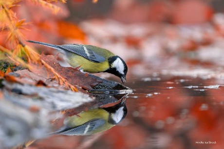 Zrcadlení - sýkora koňadra - Foto Monika Suržinová 1125