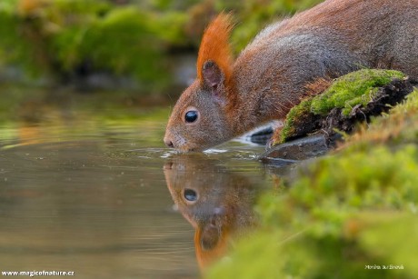 Zrcadlení - veverka má žízeň - Foto Monika Suržinová 0326